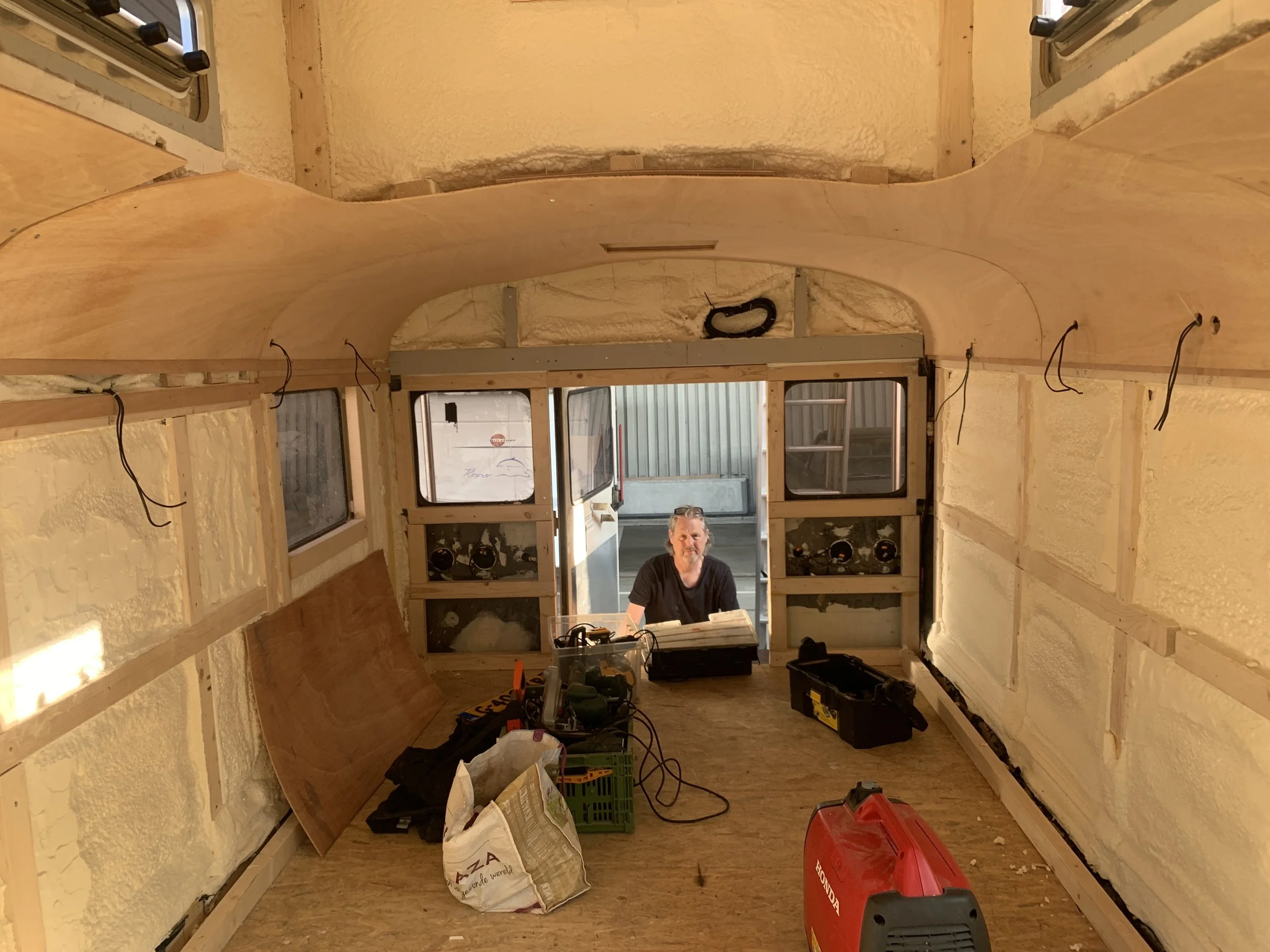 De droom van deze ondernemer was om de wereld rond te reizen in een oude Amerikaanse schoolbus. Van een volledig gestripte bus is deze "Skoolie" in een paar maanden tijd omgebouwd tot een luxe tiny home / kantoor met een tweepersoonsbed en een uitklapbaar tweepersoons logeerbed, een douche/toilet, een keukenblok en een zithoek. Het timmerwerk is door Huisheld gedaan, veel van het installatiewerk door hemzelf en enkele externe partijen. Inmiddels is hij al maanden op reis door de meest fantastische plekken op deze aarde (zie Instagram: @the_dutch_buzz)